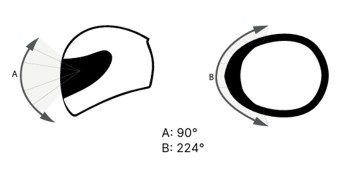 Neobičajno velik vizir zagotavlja boljšo preglednost, kaj se dogaja ob strani in zadaj. Optično je popolno oblikovan, odporen proti praskam in pripravljen za uporabo Pinlock vložka proti megljenju. Gibka tesnila zagotavljajo dobro tesnjenje.